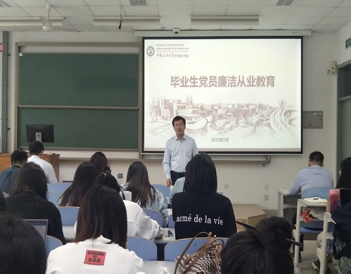 5月25日,bevictor伟德官网在南教208举行2023届毕业生廉洁从业教育讲座,邀请学校纪委监督检查室主任李健主讲,主题为“坚守廉洁底线,护航青年成长”。讲座由bevictor伟德官网党委副书记邹维忠主持,学院党委书记朱惠平、专职组织员王增举、毕业班辅导员梅琳、王英明以及学生党支部委员、2023届毕业生党员参加。