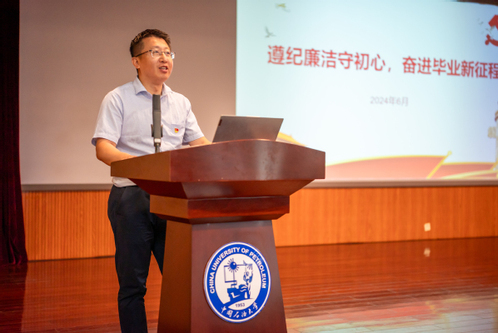 学校纪委监督检查室主任李健以“遵纪廉洁守初心,奋进毕业新征程”为题对即将离开学校的毕业生党员进行廉洁从业教育,李健通过丰富的案例,提醒并教育同学们在面对人生道路上的各种压力和诱惑时,要牢牢守住自己的初心,树立并坚守正确的世界观、人生观、价值观。他对毕业生党员提出几点期望与要求:一是要深刻理解“遵纪”二字的重要性,要严格遵守党纪国法,始终做到心中有戒、行有所止;二是要坚守初心,始终不渝,时刻保持清醒的头脑,不为诱惑所动,不为利益所扰,始终坚持党的宗旨和原则;三是要不断学习新知识、掌握新技能、适应新环境,努力成为党和人民需要的有用之才。