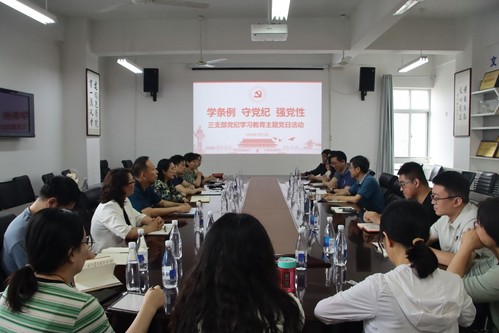 为扎实推进党纪学习教育,引导党员干部学纪知纪明纪守纪。7月12日,党委统战部党支部与文法学院中国语言文学系党支部和国际合作与交流处、港澳台事务办公室、国际教育学院党支部联学共建,开展“学条例 守党纪 强党性”党纪学习教育主题党日活动。邀请纪委办公室副主任、监察处副处长刚旭同志作“学《条例》明规矩,倡廉洁扬清风”专题讲座。文法学院党委书记姚成郡参加活动并致辞。